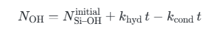 Entre ellos, khyd es la constante de velocidad de hidrólisis, kcond es la constante de velocidad de condensación por deshidratación y es el tiempo de tratamiento. Este modelo puede describir cuantitativamente la tendencia de evolución de los grupos hidroxilo con tratamiento térmico o tratamiento térmico húmedo.